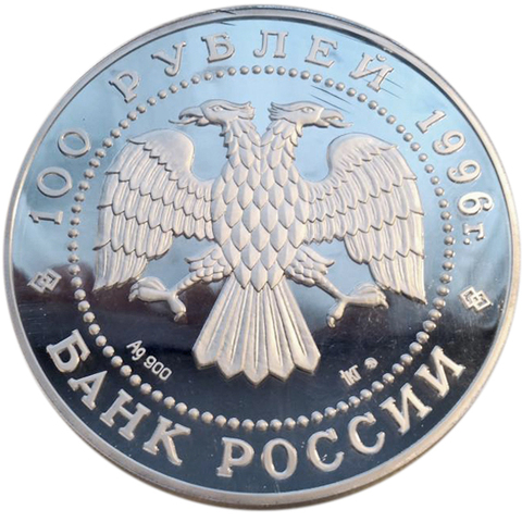 100 рублей. Сохраним наш мир - Соболь. 1996 год. Proof. 1 кг