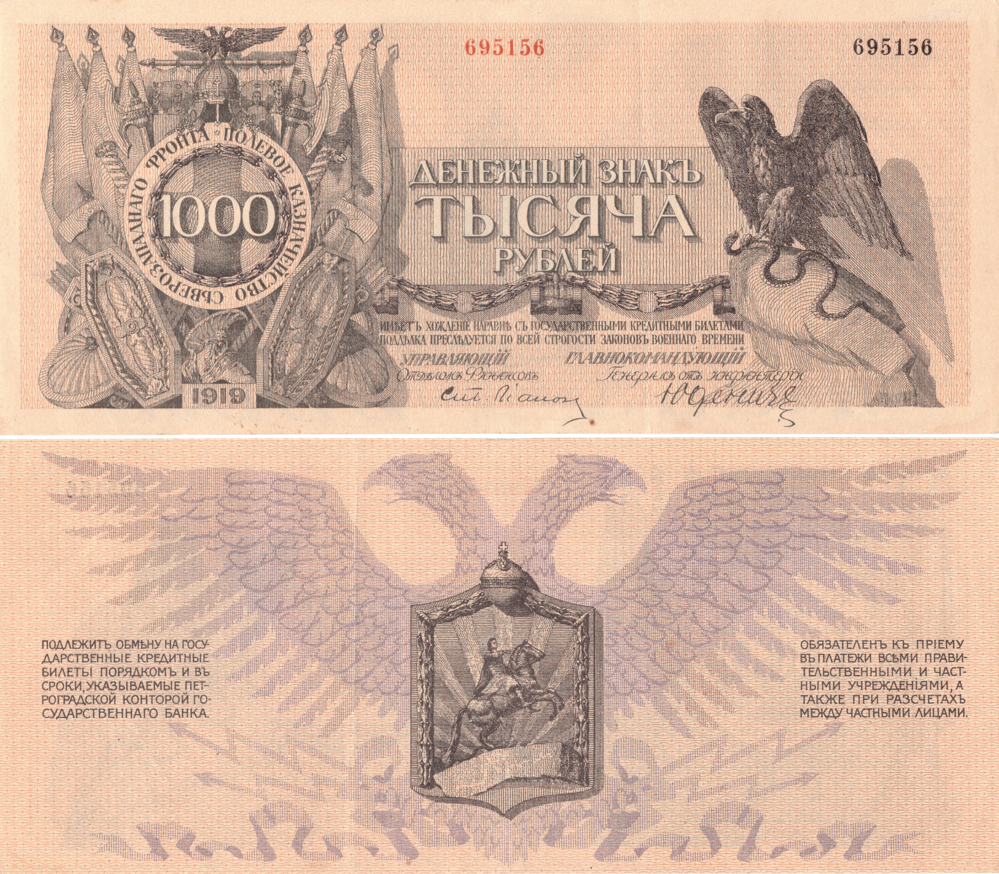 1000 рублей 1919 год. Юденич. Полевое казначейство Северо-западного фронта.