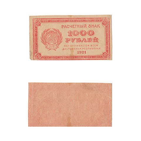 1000 рублей 1921 г. Расчетный знак РСФСР XF
