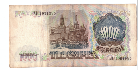 1000 рублей 1991 года АО 1091995 на удачу (кто родился 10 сентября 1995 года) F