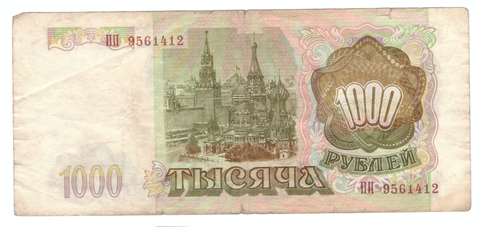 1000 рублей 1993 г. Серия ПП 9561412 VF