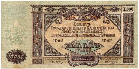 10000 рублей 1919 год - Юг России - Серия ЯЕ-085 - Локальный выпуск