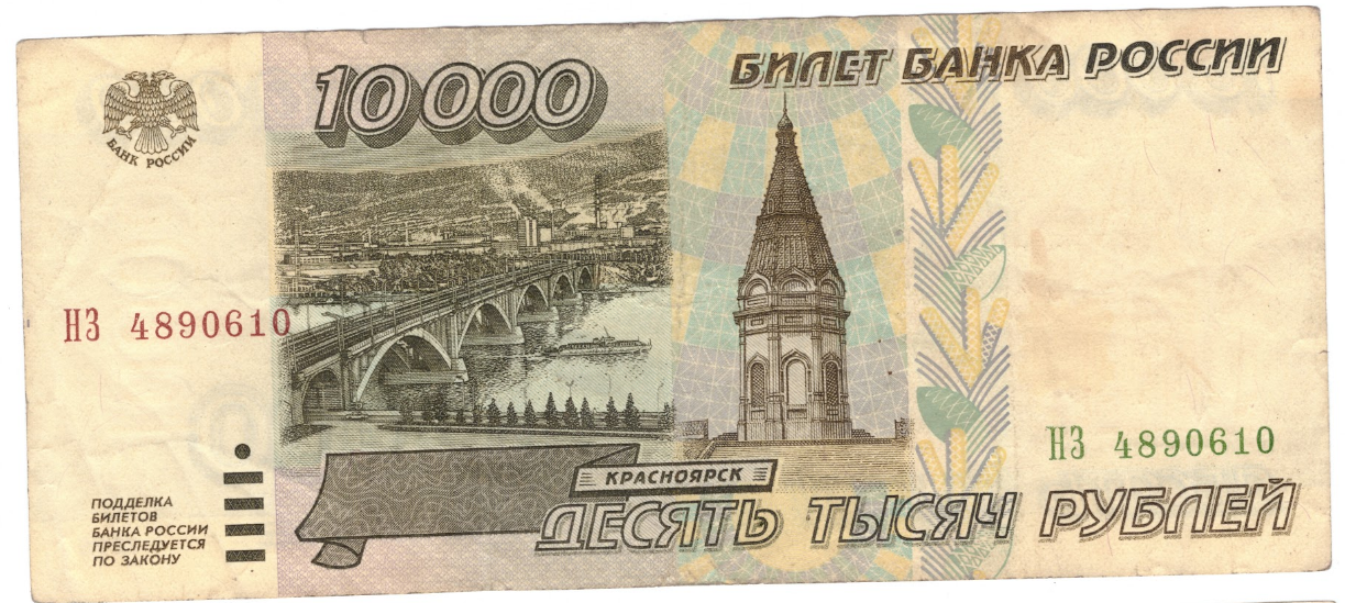 10000 рублей 1995 г. Серия: -НЗ- VF