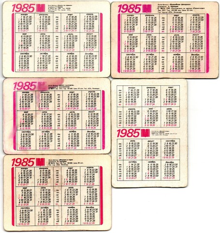№ 103 Набор из 5 переливных (стерео) Календариков . Мультфильмы СССР 1985 год.
