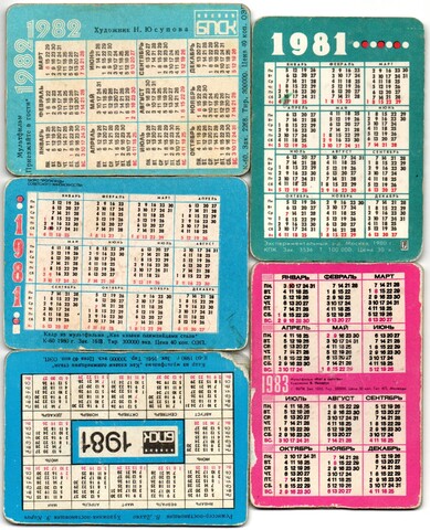 № 105 Набор из 5 переливных (стерео) Календариков . Мультфильмы СССР 1981, 1982, 1983 год.