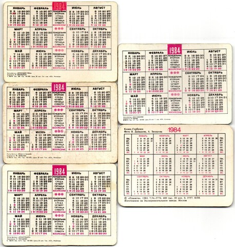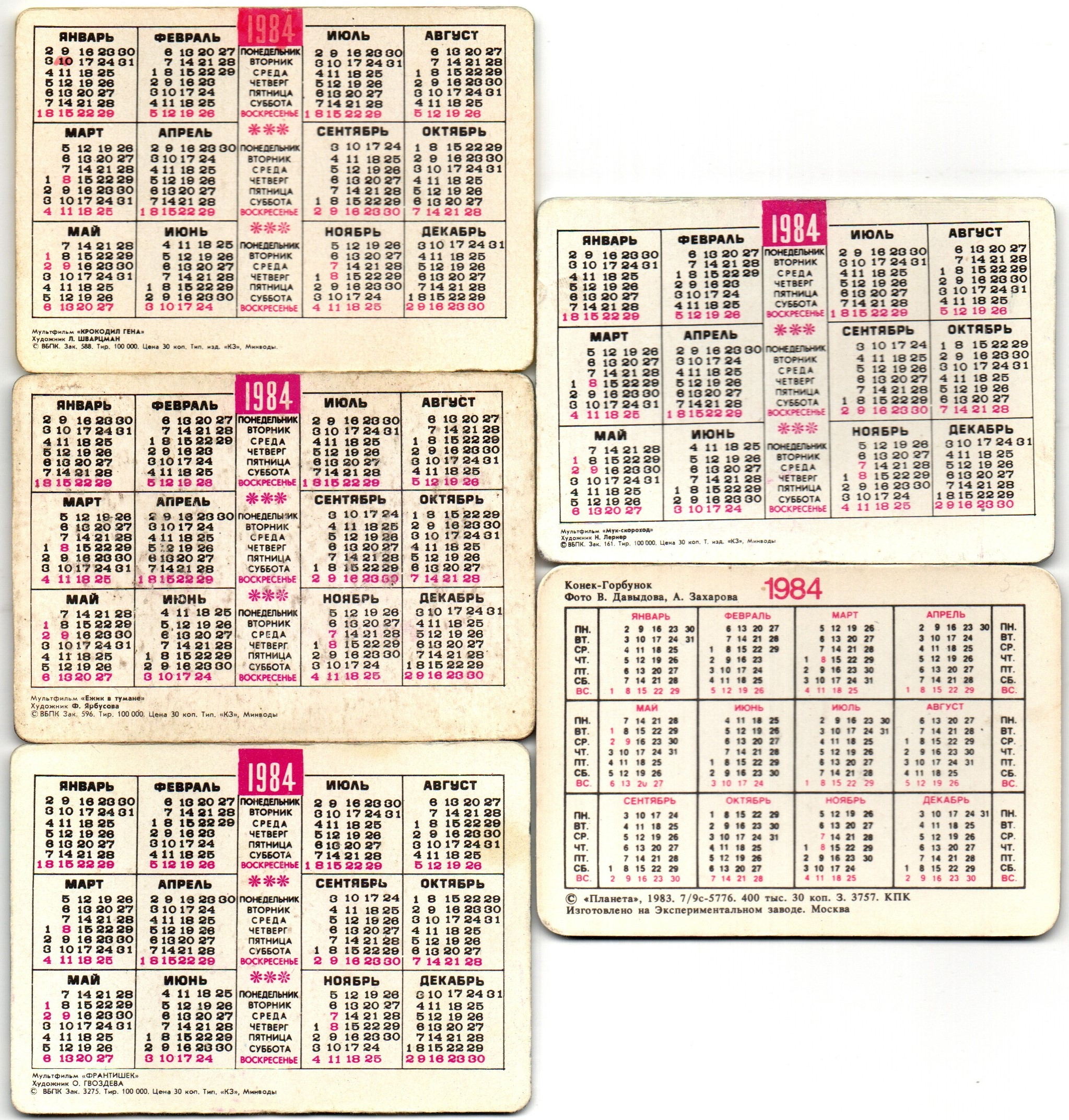 № 109 Набор из 5 переливных (стерео) Календариков . Мультфильмы СССР 1984 год.