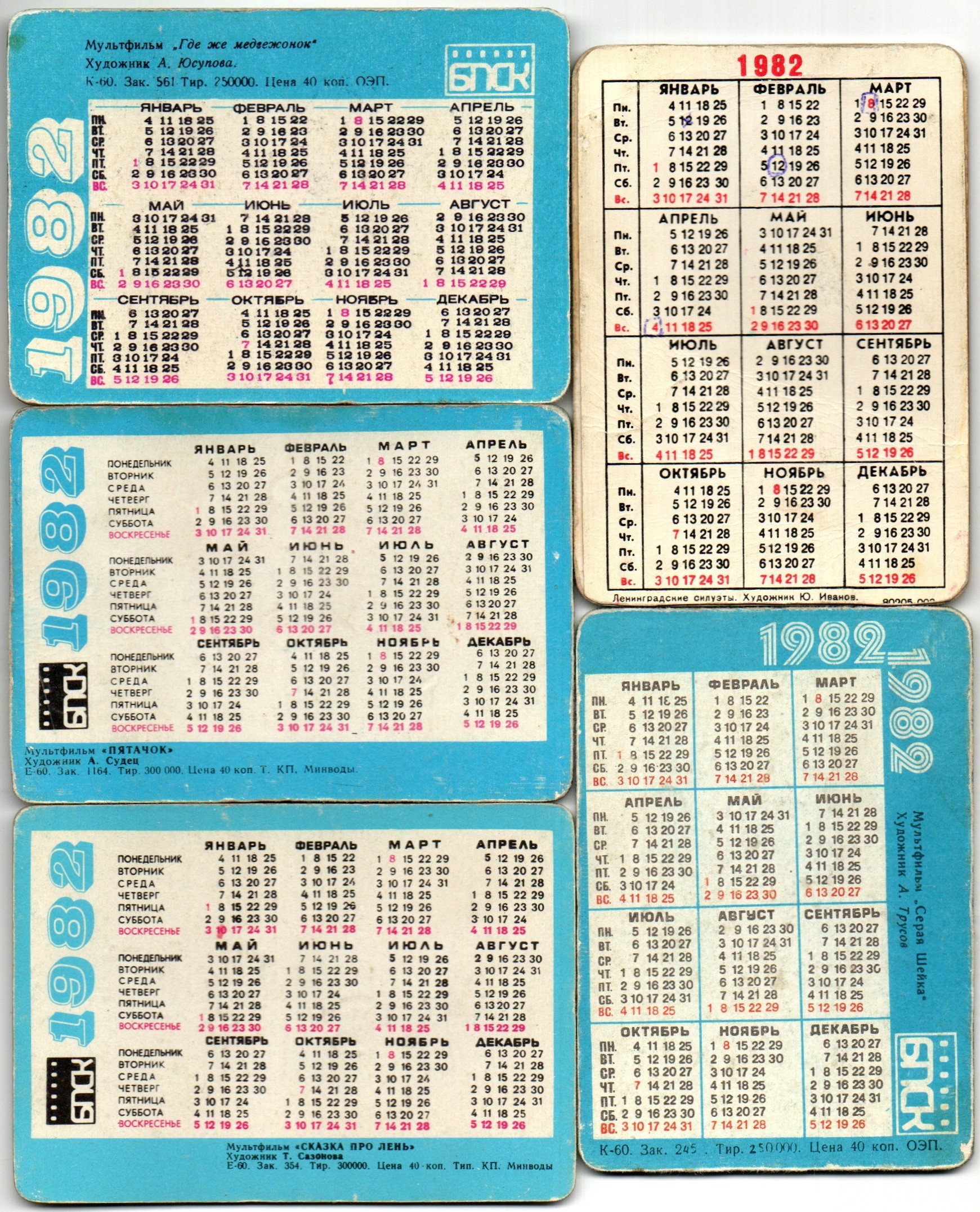 № 115 Набор из 5 переливных (стерео) Календариков . Мультфильмы СССР 1982 год.