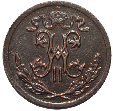 Аверс: вверху Корона Российской империи с выходящими из нее двумя лентами, ниже вензель Александра III, под ним две скрещенные ветви: слева лавровая, справа дубовая.