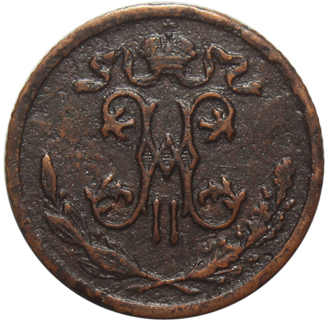 Аверс: вверху Корона Российской империи с выходящими из нее двумя лентами, ниже вензель Александра III, под ним две скрещенные ветви: слева лавровая, справа дубовая.