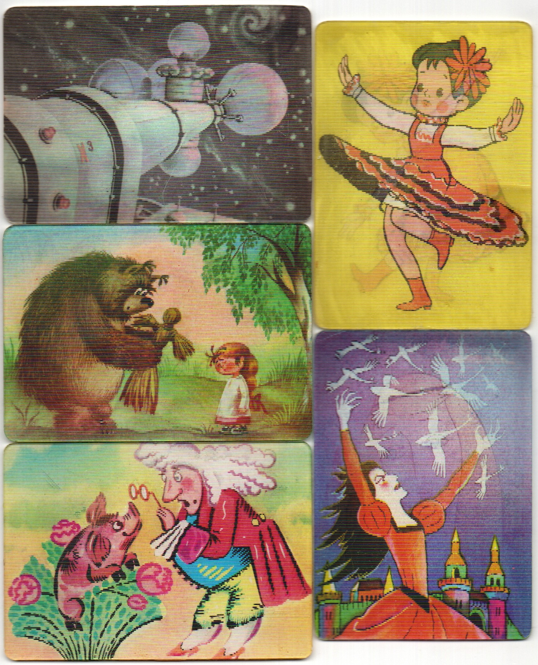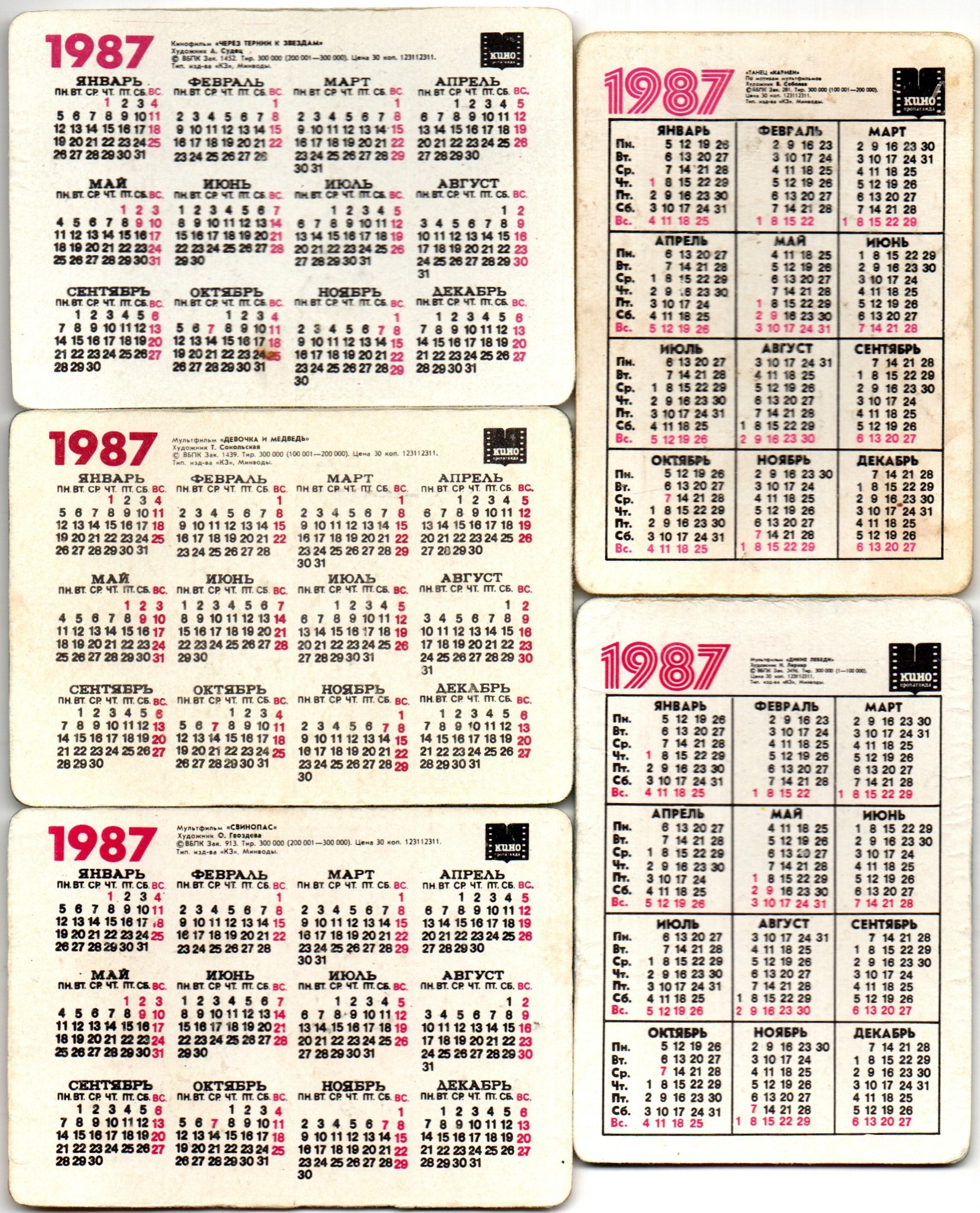 № 121 Набор из 5 переливных (стерео) Календариков . Мультфильмы СССР 1987 год.
