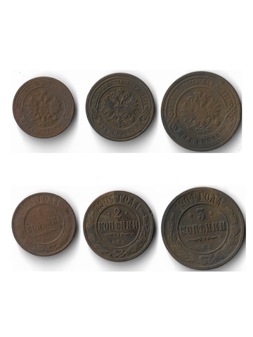 1,2,3 копейки 1904 год СПБ Николай II (F)