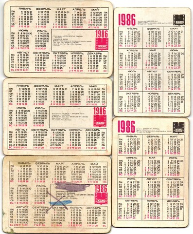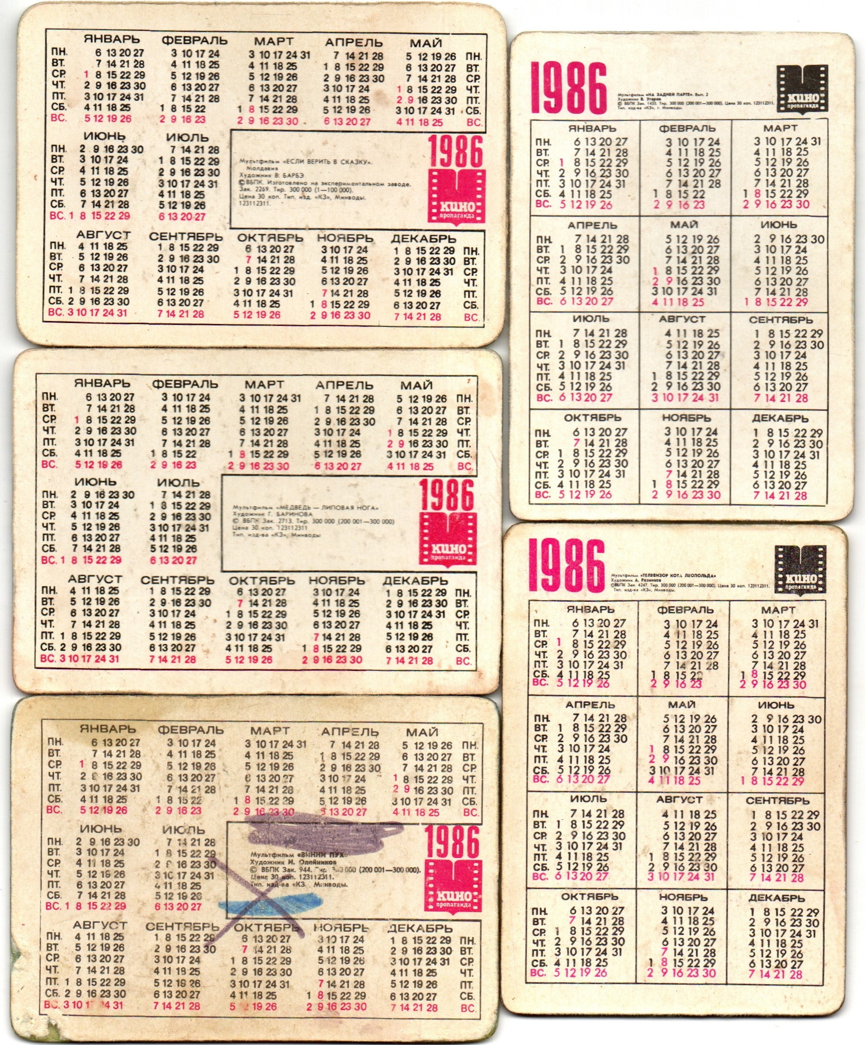 № 129 Набор из 5 переливных (стерео) Календариков . Мультфильмы СССР 1986 год.