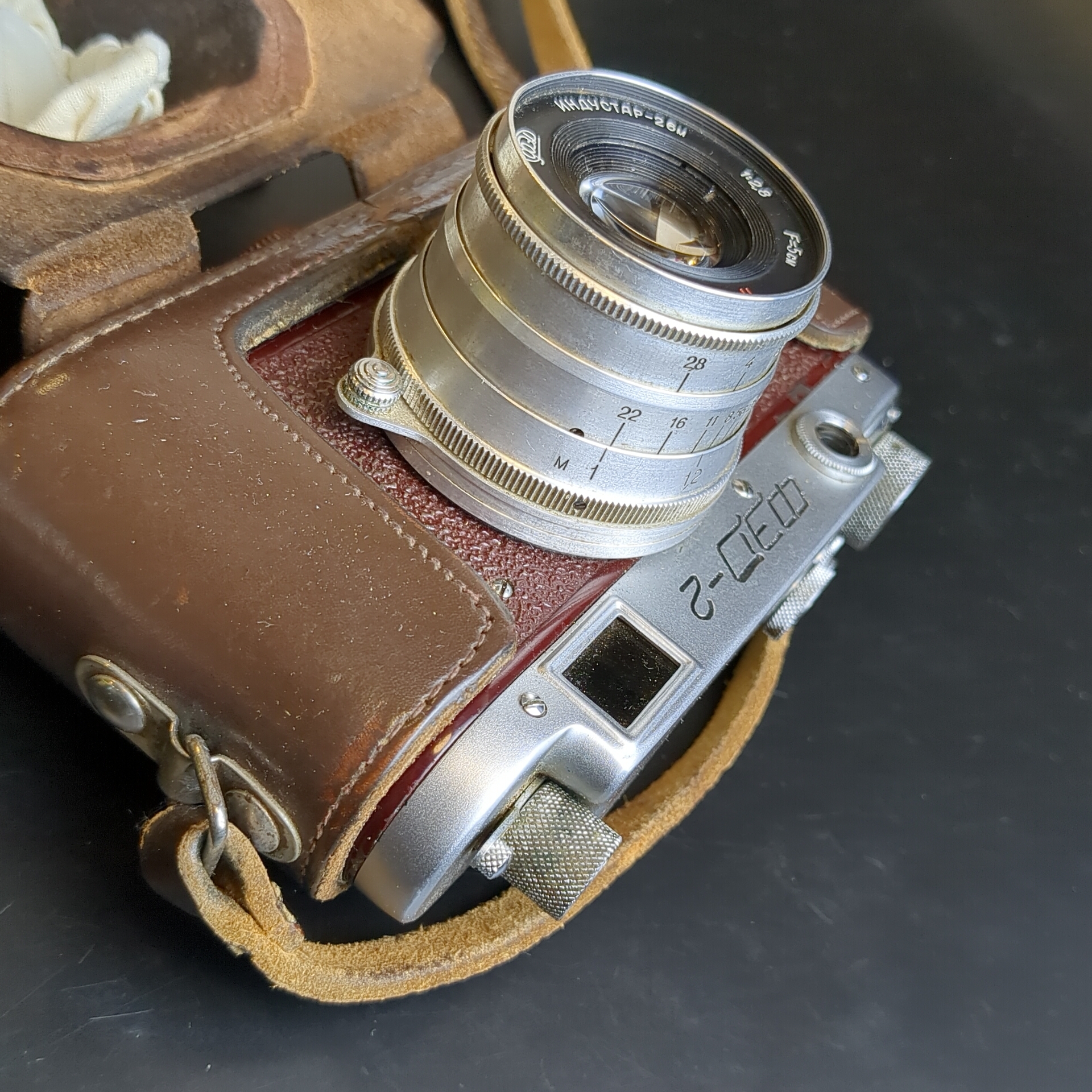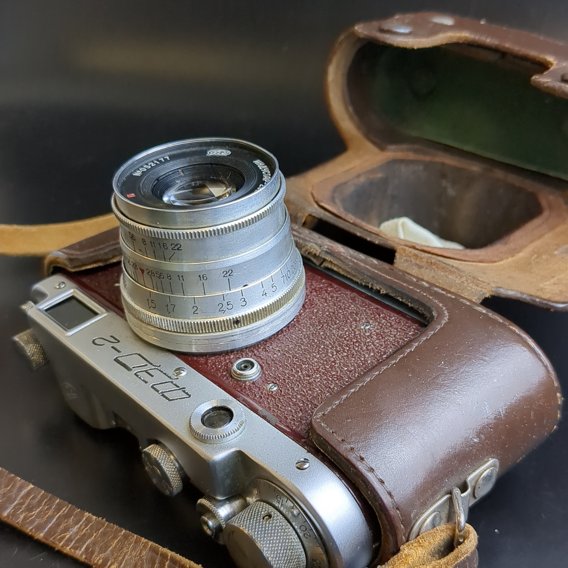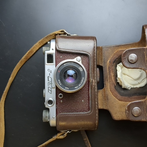 №13 Фотоаппарат ФЭД - 2 с объективом Индустар - 62 м в оригинальном кофре с документом , металл, стекло, кожа, Харьковский машиностроительный завод им. Дзержинского (ФЭД), СССР, 1961-1979 гг. На кофре разошлись нитки. Рабочий