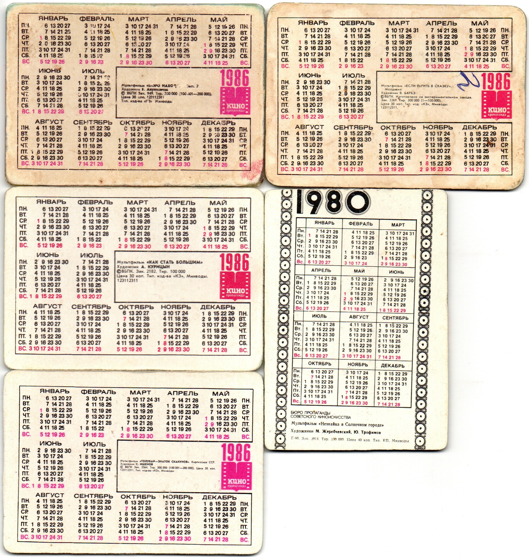 № 131 Набор из 5 переливных (стерео) Календариков . Мультфильмы СССР 1980, 1986 год.