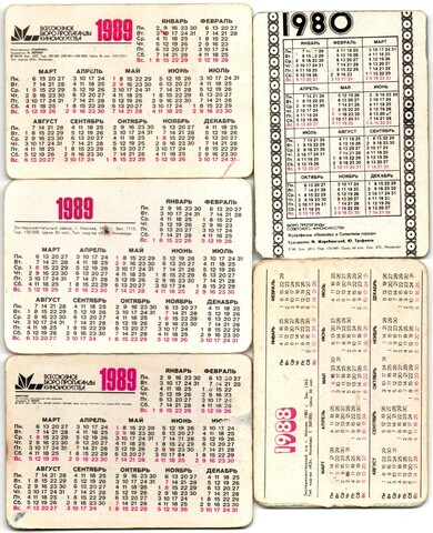 № 137 Набор из 5 переливных (стерео) Календариков . Мультфильмы СССР 1980, 1988, 1989 год.