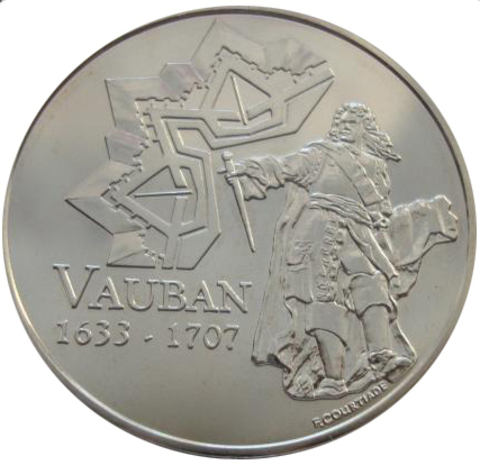 Реверс: Статуарное изображение Вобана и план укрепления.