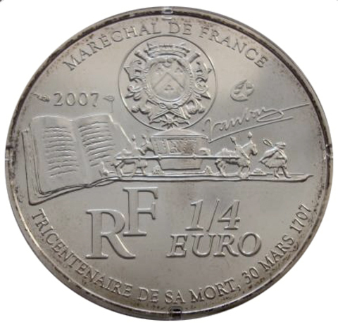 1/4 евро 2007 год. Франция. Себастьян Ле Претра де Вобан. Серебро