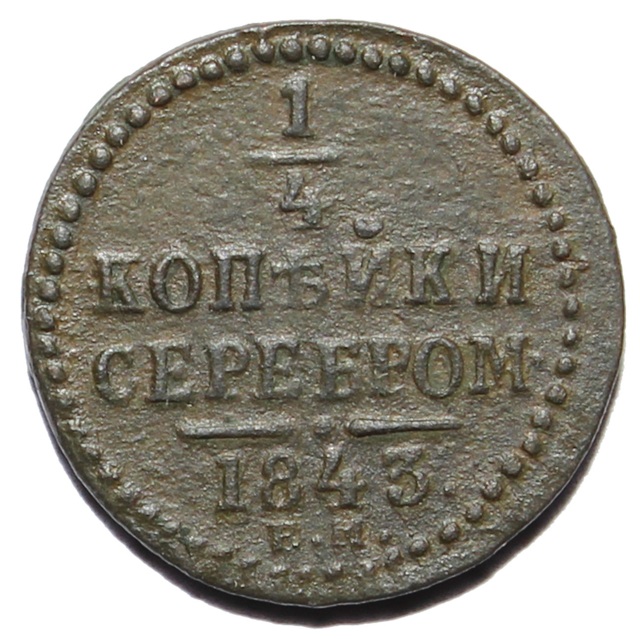 1/4 копейки серебром 1843 год. ЕМ. Николай I. VF-