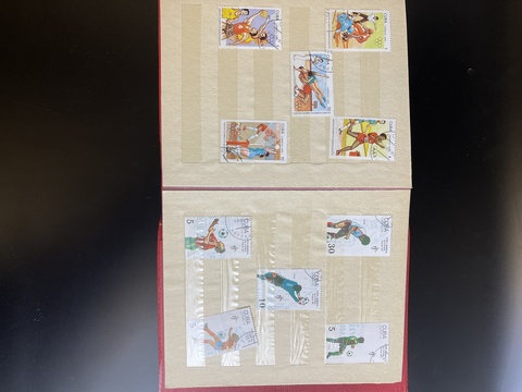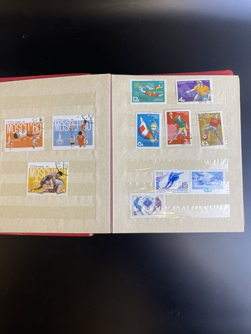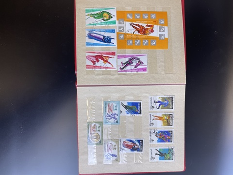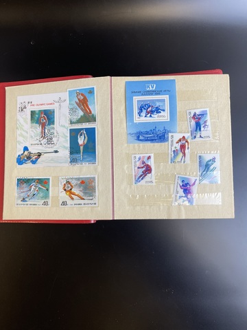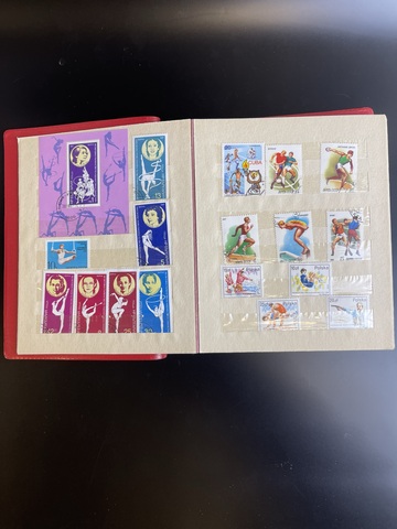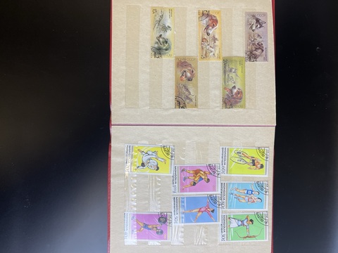 140 марок в альбоме СССР на разные тематики: автомобили, спорт, футбол, гимнастика, зимние олимпийские игры, лошади, охота, собаки, . Страны: СССР, Куба, Польша, Болгария, Корея, Венгрия, Монголия, Вьетнам, Гвинея