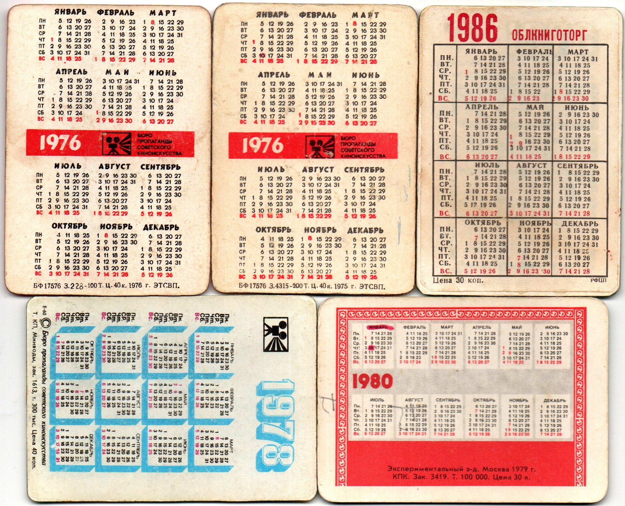 № 144 Набор из 5 переливных (стерео) Календариков . Мультфильмы СССР 1976, 1978, 1986, 1980 год.