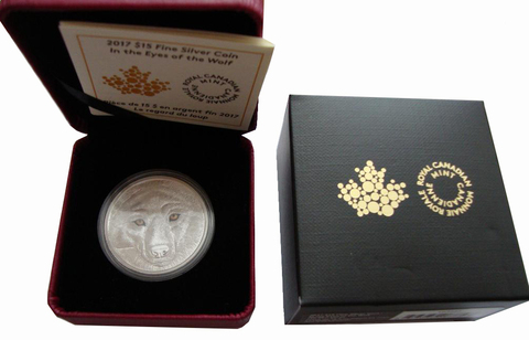 15 долларов. Глаза волка. Свечение в темноте. Эффект настоящих глаз. Канада. Серебро. 2017 год.