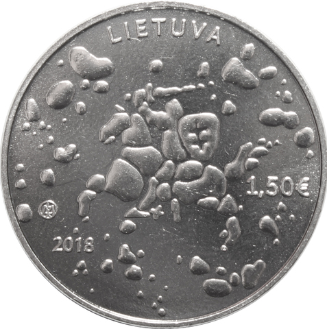 Аверс: в центре монеты изображен Витязь, который собран из капелек росы. Вверху надпись, страна эмитент “LIETUVA”, справа номинал “5€” и “1,5€”, слева год выпуска “2018” и чуть ниже логотип монетного двора