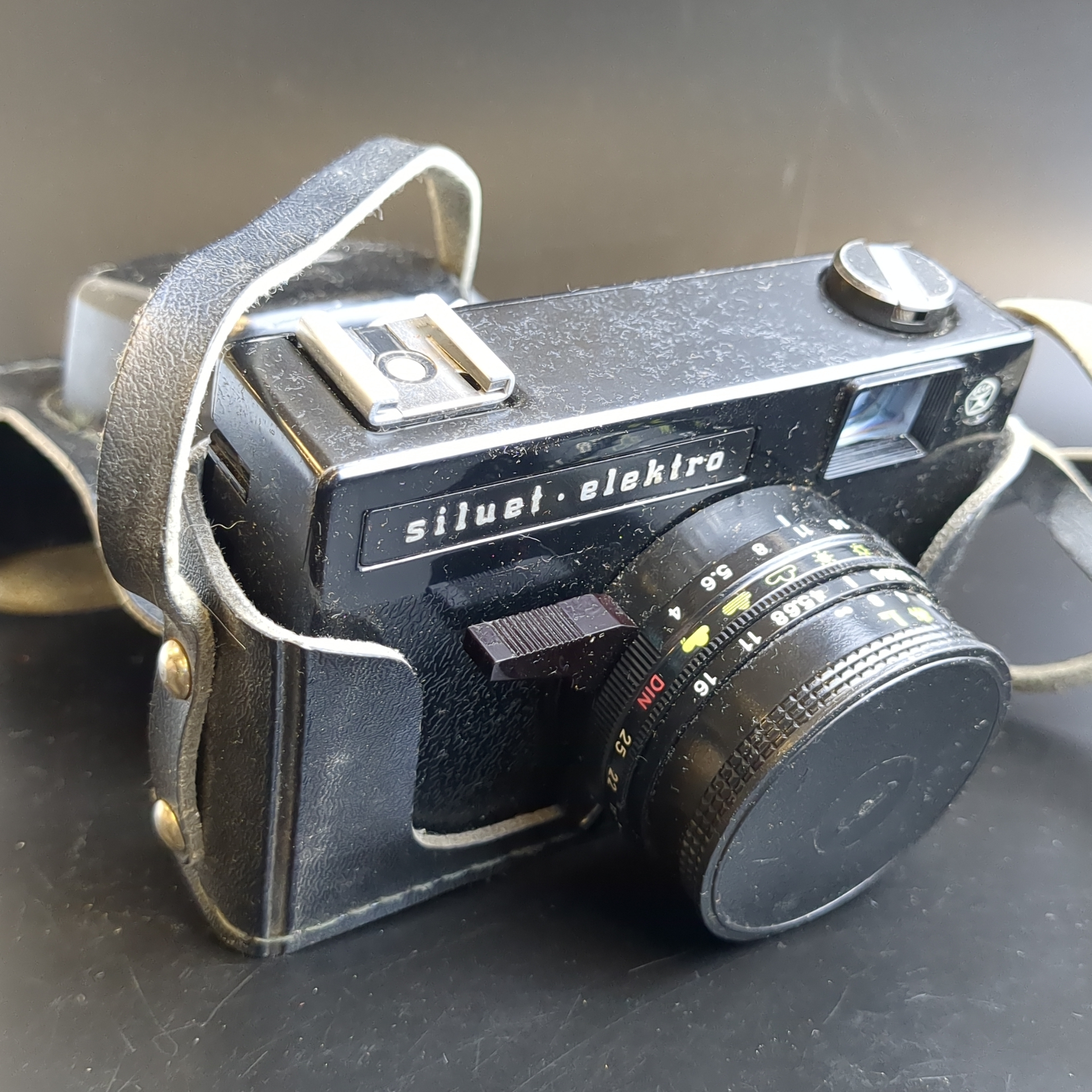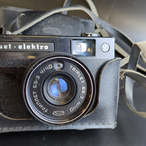№15 Фотоаппарат Силуэт - Электро с обёективом Триплет 69-3 в чехле, стекло, металл, пластмасса, Белорусское оптико-механическое объединение, СССР, 1976—1981 гг. Рабочий