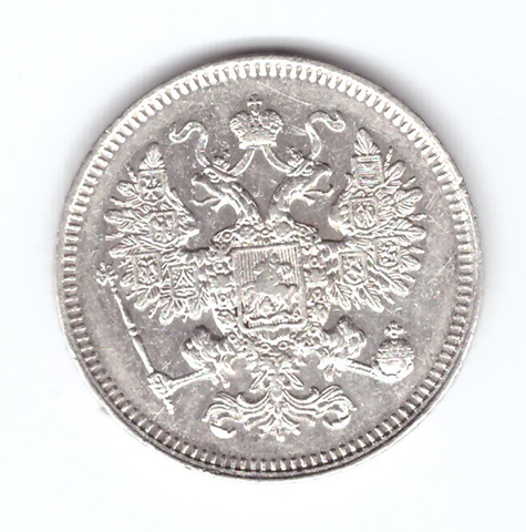 Аверс: В центре изображен Малый Государственный Герб Российской империи - двуглавый орёл, головы которого увенчаны двумя коронами, третья, большая корона над ними. Все они соединены орденской лентой ордена Св. Апостола Андрея Первозванного. На груди орла расположен Московский герб, в щите изображен Георгий Победоносец с копьем поражающий дракона. Вокруг щита цепь ордена Св. Апостола Андрея Первозванного. На крыльях изображены гербы: Царства Казанского, Польского, Херсонеса Таврического, Астраханского, Сибирского, Грузинского и герб соединенных княжеств Киевского, Новгородского и Владимирского — по 4 на каждое крыло. В правой лапе орла – скипетр, в левой – держава. По окружности канта имеются рельефные элементы, выполненные в виде зубцов.