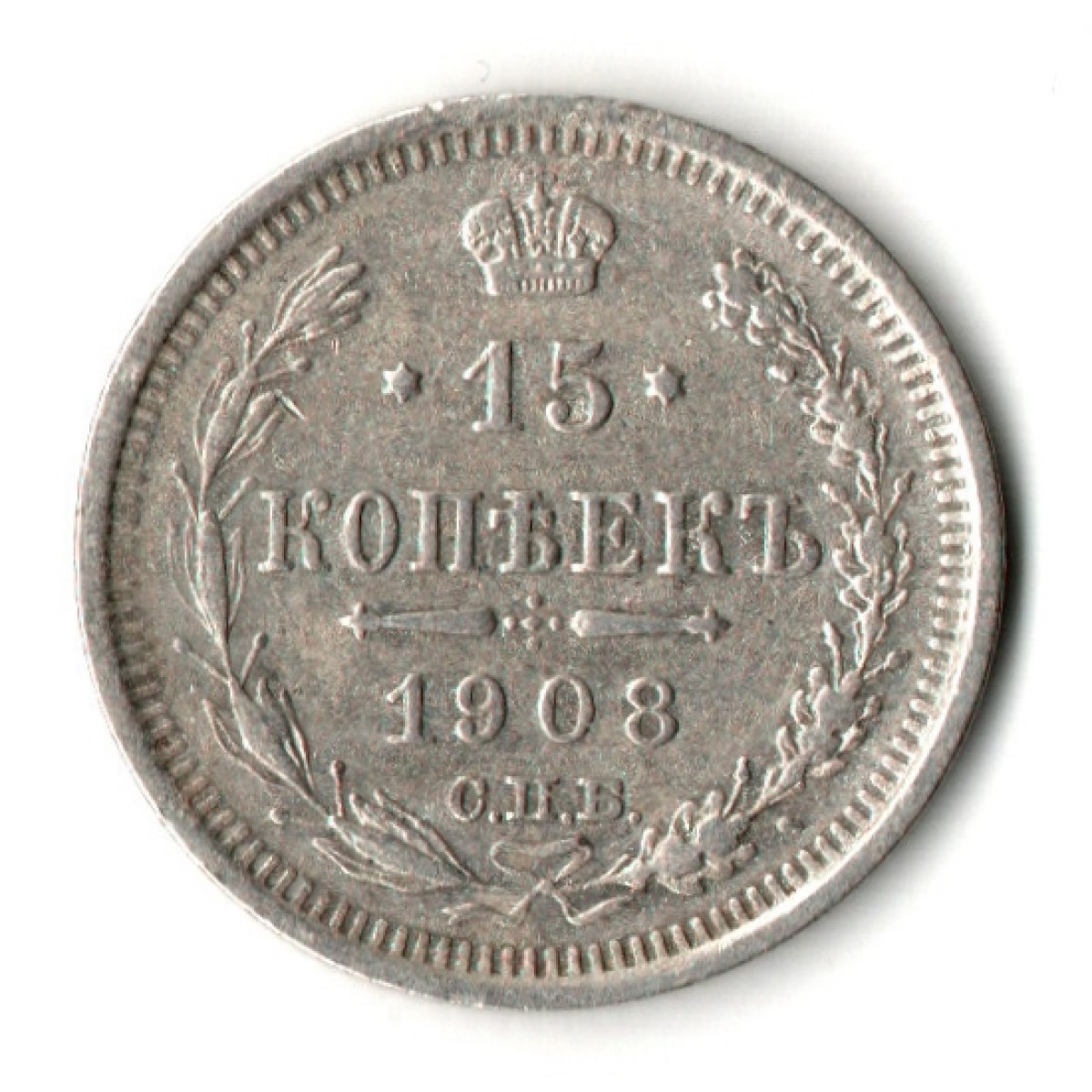 15 копеек 1908 год - СПБ - ЭБ - Николай II