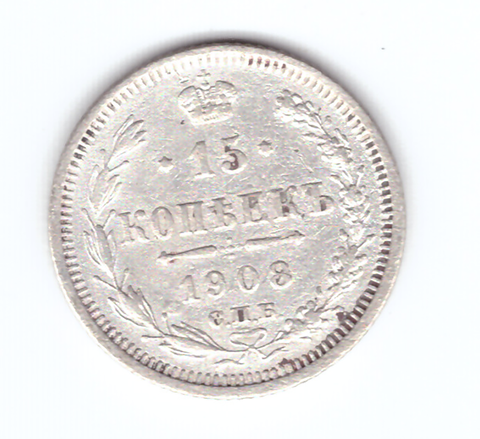 15 копеек 1908 года СПБ ЭБ VF