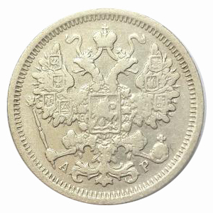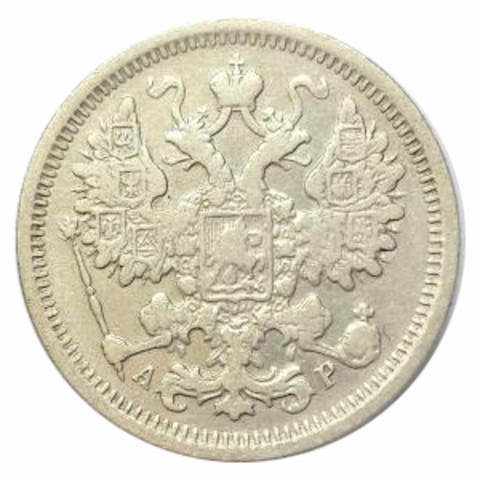 Аверс: в середине Малый Государственный Герб Российской империи, внизу вдоль края монеты слева и справа от хвоста орла инициалы минцмейстера «АР».
