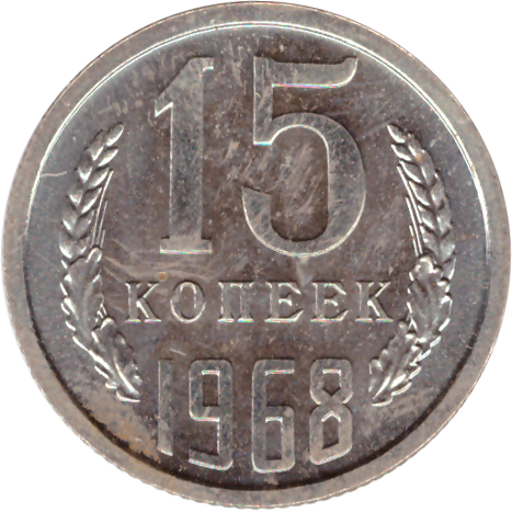 Аверс: Штемпель 1. вторые колосья с внутренней стороны без остей, герб СССР - 15 витков ленты.