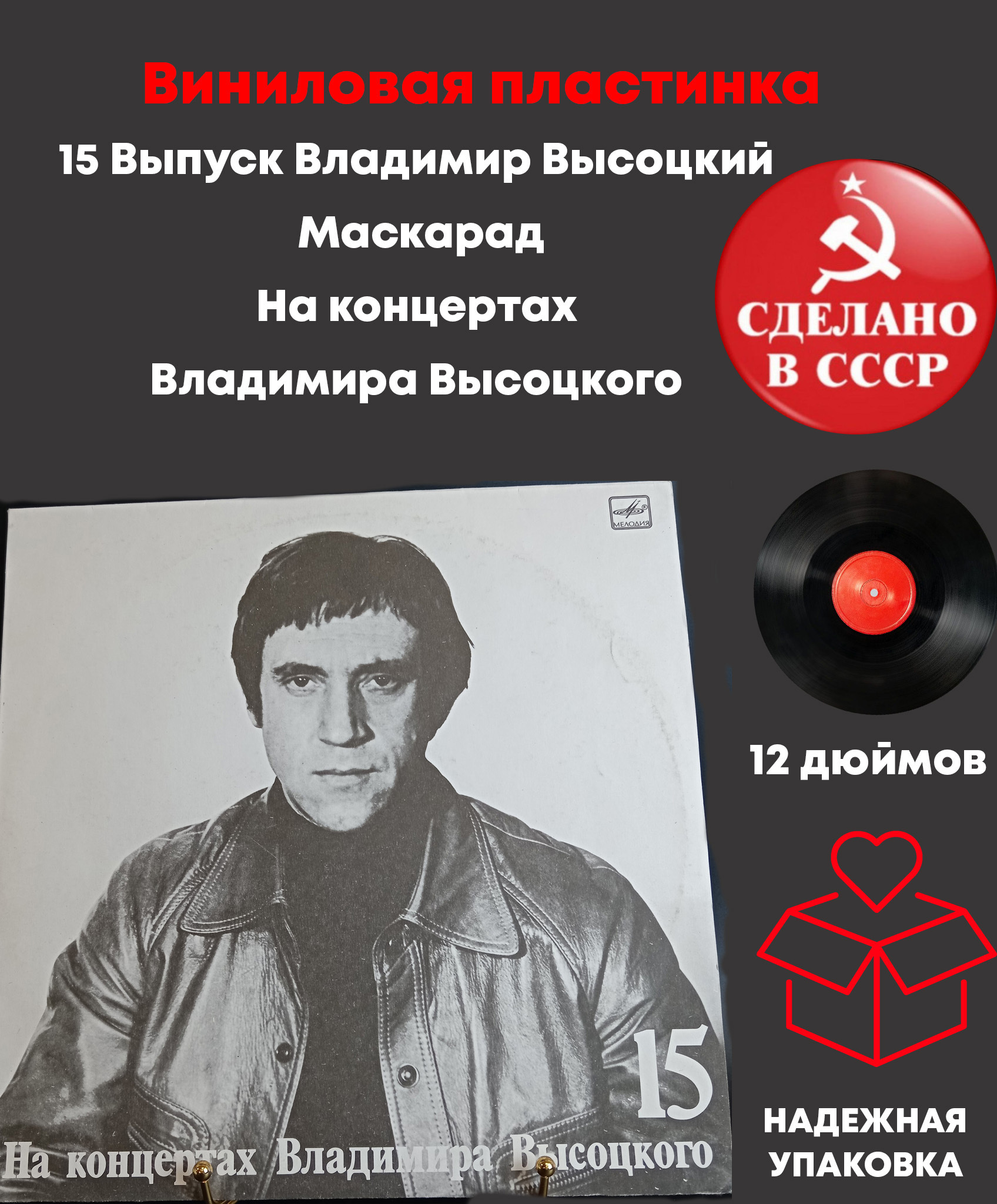 15 Выпуск Владимир Высоцкий - Маскарад, виниловая пластинка 12 дюймов LP, На концертах Владимира Высоцкого Мелодия СССР 1990 год .