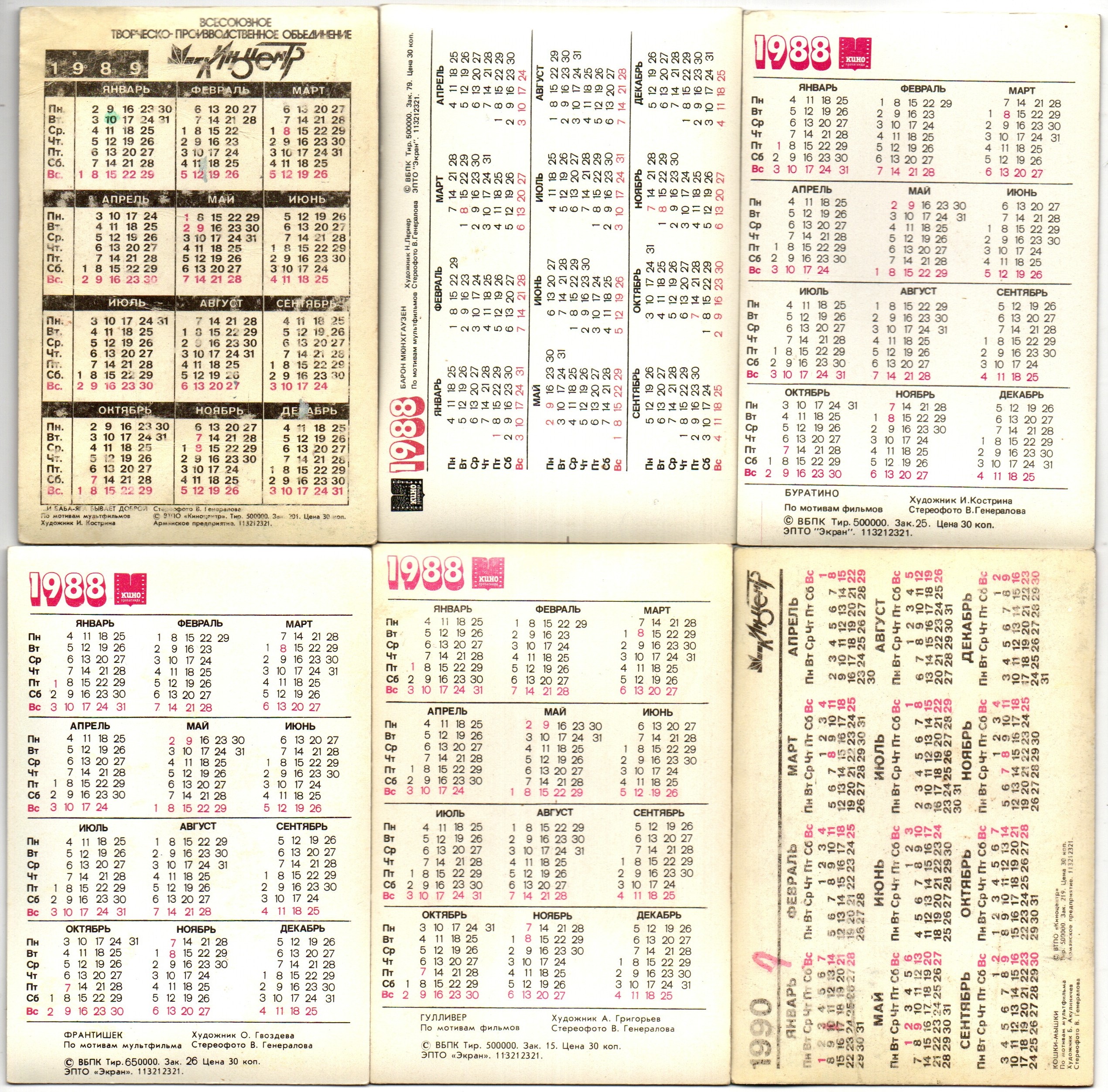 № 153 Набор из 10 объёмных стерео Календариков СССР мультфильмы и др. 1988, 1989, 1990 год