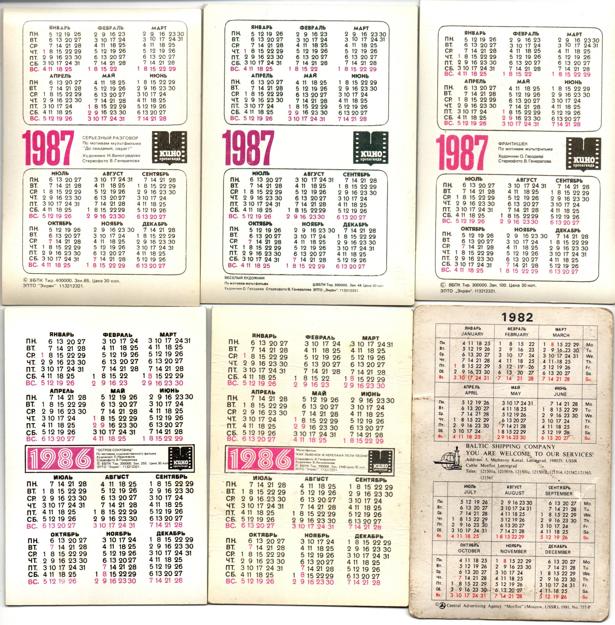№ 154 Набор из 10 объёмных стерео Календариков СССР Мультфильмы 1986, 1987, 1982 год.