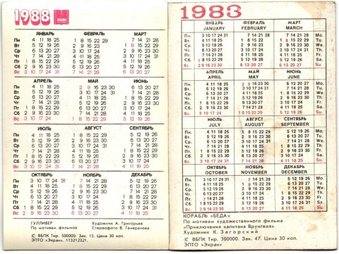 № 155 Набор из 10 объёмных стерео Календариков СССР Мультфильмы 1986, 1987, 1982 год.