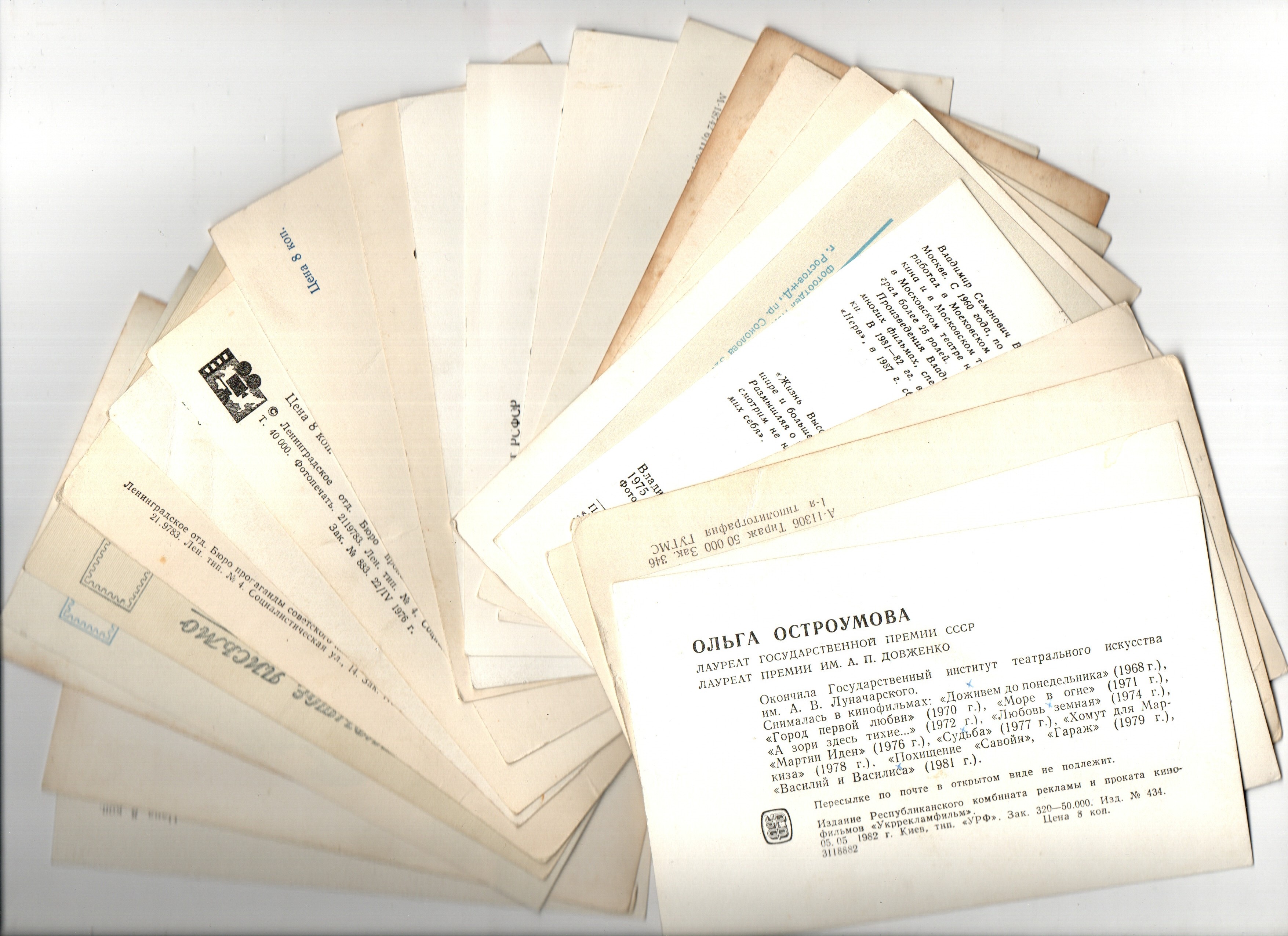 №18 Открытки Артисты и актёры СССР 1960–1970-е г. 25 штук. Чёрно-белые, чистые, без повторов