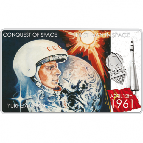 2 доллара 2011 год. Юрий Гагарин Первый человек в космосе. Ниуэ. Серебро