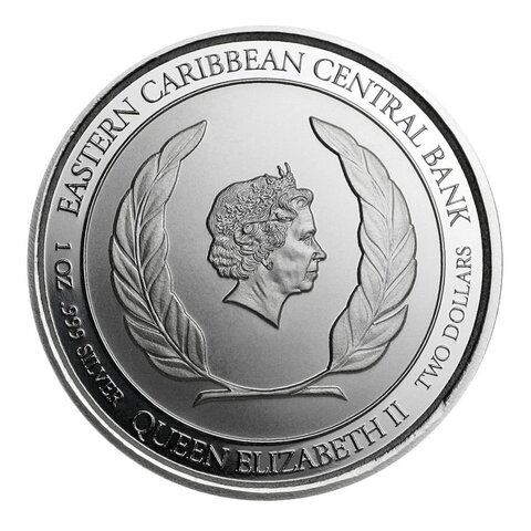 2 доллара 2019 год. Корабль парусник Ромовый контрабандист. Антигуа и Барбуда. BrUNC