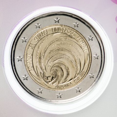 2 евро "50 лет всеобщего избирательного права в Андорре", в блистере. Андорра. 2020 год