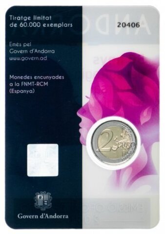 2 евро 2020 "50 лет всеобщего избирательного права в Андорре", в блистере. Андорра