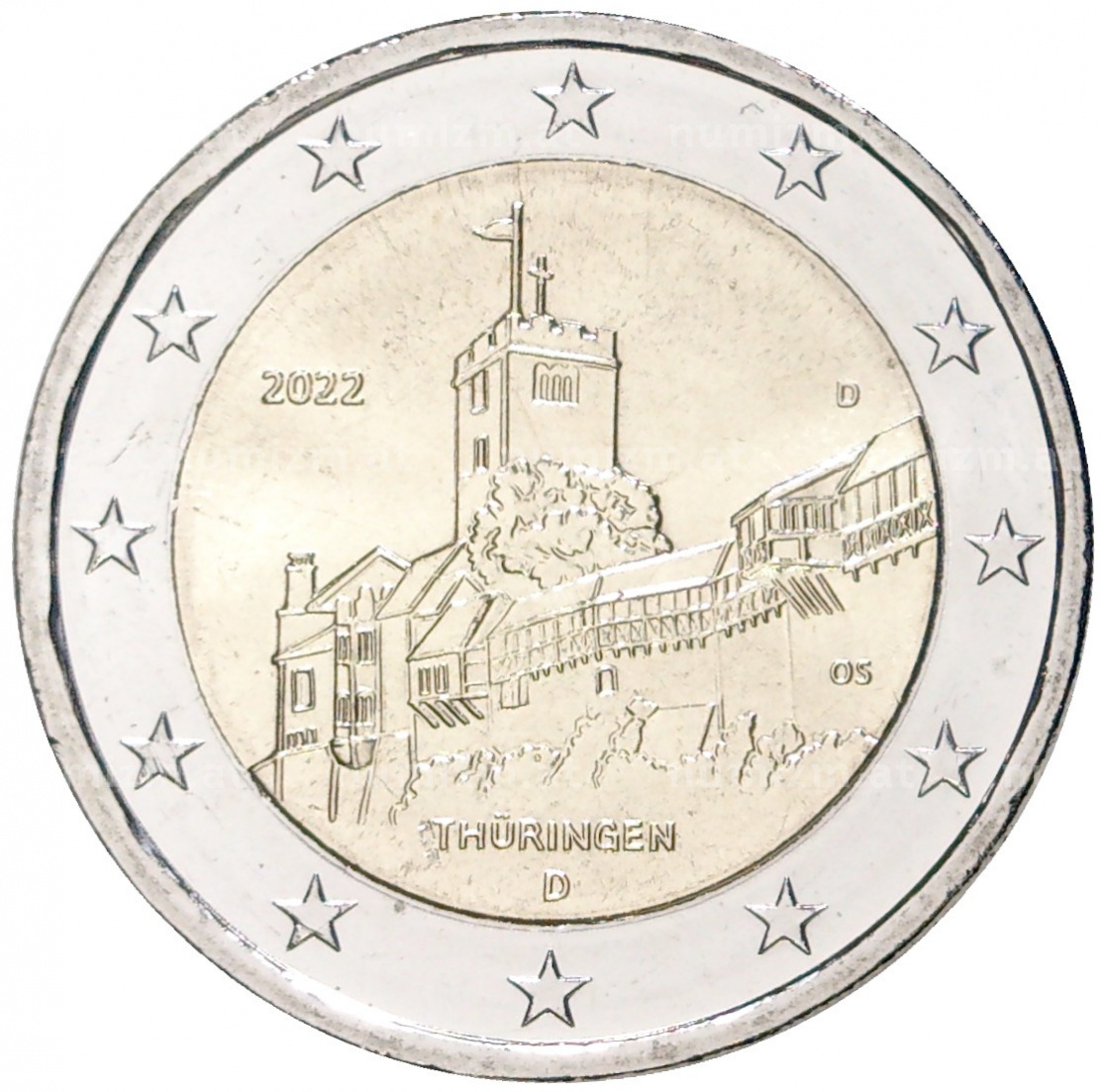 2 евро 2022 год Германия Федеральная земля Тюрингия. Замок Вартбург Двор D