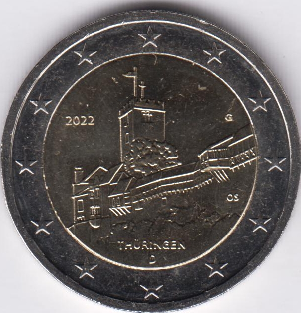 2 евро 2022 год Германия Федеральная земля Тюрингия. Замок Вартбург Двор G