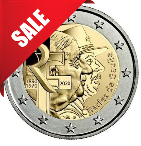 2 евро. 50 лет со дня смерти Шарля де Голля и 80-летие обращения 18 июня. Франция. 2020 год