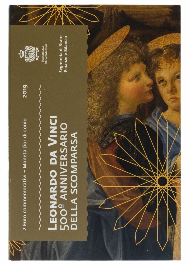 2 евро. 500 лет со дня смерти Леонардо да Винчи. Сан-Марино. 2019 г. В буклете