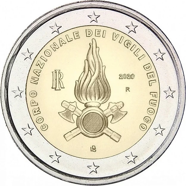 2 евро. Национальный корпус пожарных Италии. Италия. 2020 год