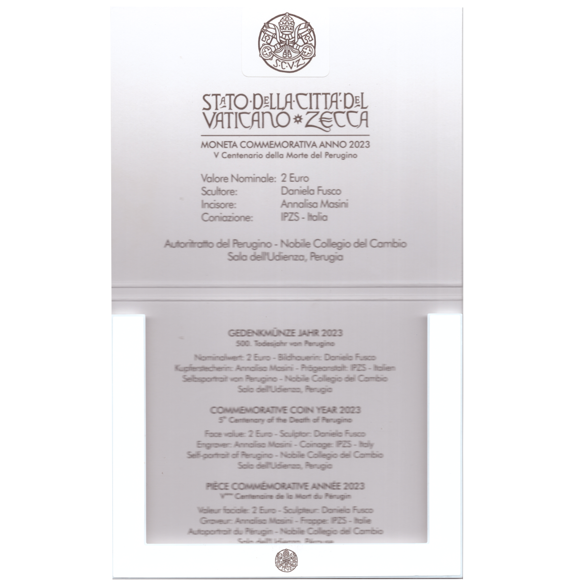 2 евро Пьетро Перуджино Ватикан в буклете