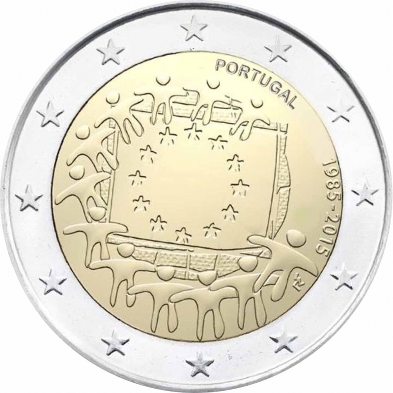 Аверс: Флаг ЕС в обрамлении двенадцати стилизованных человеческих фигур, название страны-эмитента и годы: «1985-2015».