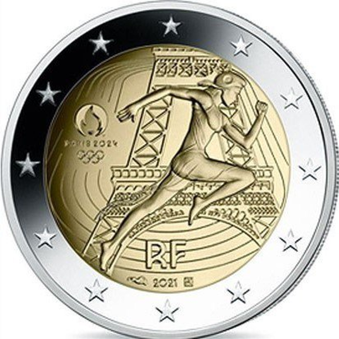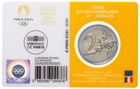 2 евро XXXIII летние Олимпийские игры, Париж 2024 в блистере желтого цвета Франция 2021 год