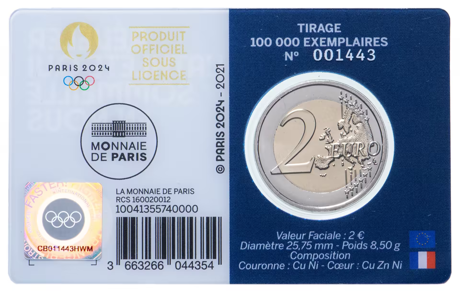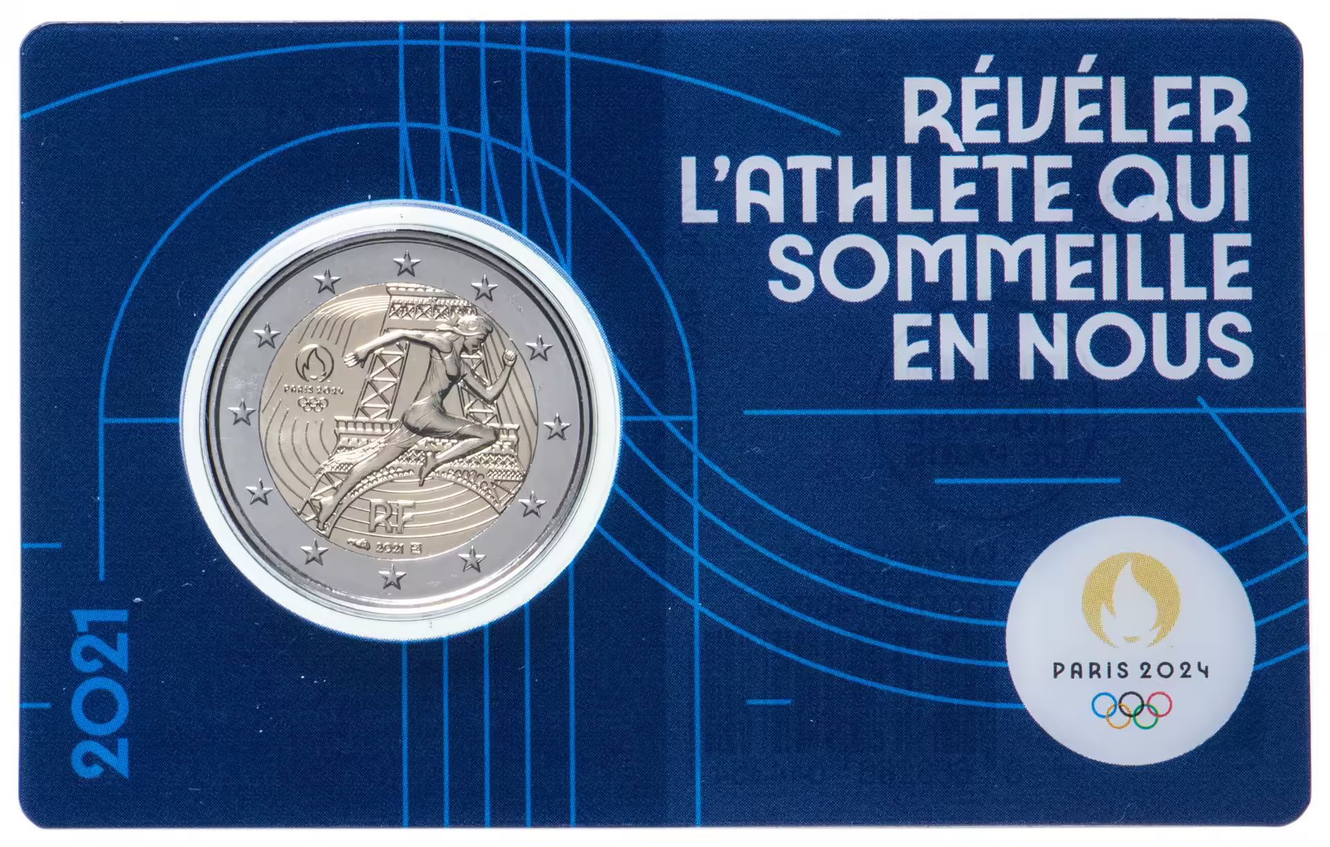 2 евро XXXIII летние Олимпийские игры, Париж 2024 в блистере синего цвета Франция 2021 год